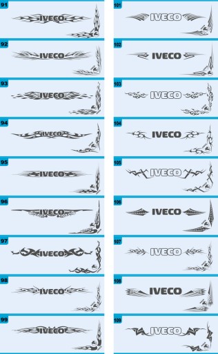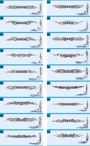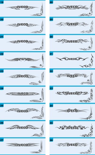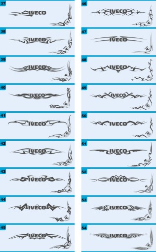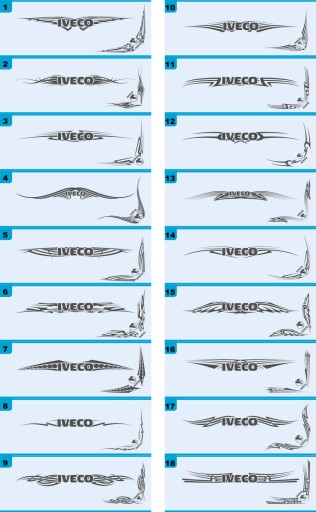 Naklejki na narożniki szyby TIR IVECO 45 x 45 + pas blenda , 108 wzorów