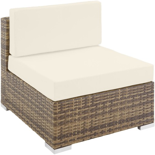 Do ogrodów lub do pomieszczeń. Nasza polirattanowa sofa to bardzo uniwersalny zestaw, który wizualnie pasuje do każdego ogrodu, tarasu, ogrodu zimowego lub salonu. Wygodne krzesła i elegancki stół są idealne do wygodnego spędzania czasu. Polirattanowy zestaw zachwyca nie tylko eleganckim wyglądem, ale również odpornością na działanie warunków atmosferycznych. Dzięki niskiej wadze meble mogą być łatwo transportowane i przechowywane. Wykonana ze szkła powierzchnia stołu wygląda bardzo elegancko i jest łatwa do czyszczenia. Bardzo wygodne siedzisko wykonane z poliestru zostało dopasowane kolorystycznie do koloru naturalnej wikliny oraz wyposażone w znajdujący się z tyłu zamek błyskawiczny, co pozwala na łatwe czyszczenie poduszki. Powierzchnia tapicerki została zaimpregnowana w celu ochrony przed wilgocią. Dzięki czemu brud i kropelki wody po prostu spływają. Poszczególne elementy zestawu mogą zostać dobrane zgodnie z Państwa życzeniem.