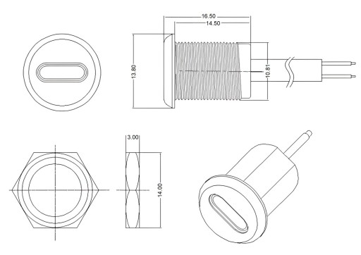 Gniazdo USB-C 4 przewody do obudowy długość przewodów około 14cm