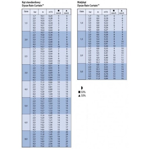 - Zawiera 12 dodatkowych dysz: (3 dysze o małej trajektorii od 1,0 do 3,0 GPM i 8 dysz Rain Curtain od 1,5 do 8,0 GPM)