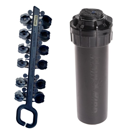 Profesjonalny zraszacz rotacyjny Rain Bird 5004 oferuje wysoką wytrzymałość i wydajność oraz dodatkową precyzję 12 dodatkowych dysz w pakiecie