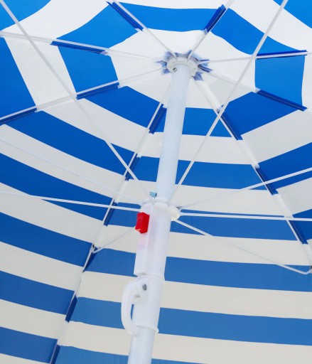 Wzór w paski nadaje parasolowi nowoczesny i elegancki wygląd, który będzie doskonale komponować się z każdym otoczeniem. Niezależnie od tego, czy używasz go na plaży, w ogrodzie, czy na tarasie, parasol ten doda estetyki i stylu Twojej przestrzeni.