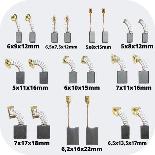 Na naszej aukcji dostępny jest zestaw 10 szczotek węglowych w różnych rozmiarach. Dzięki temu można użyć ich do różnych sprzętów bez konieczności pojedynczego zakupu. Szczotki wykonane są z wysokiej jakości podzespołów.