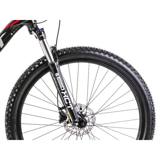Ten rozmiar koła zapewnia dodatkową zwrotność, zwłaszcza na wąskich i krętych trasach. Amortyzator przedni SR Suntour XCT HLO o skoku 100 mm świetnie radzi sobie w trudnym terenie, zapewniając płynność i przyczepność terenowym oponom Xtra Action o szerokości 2.10.