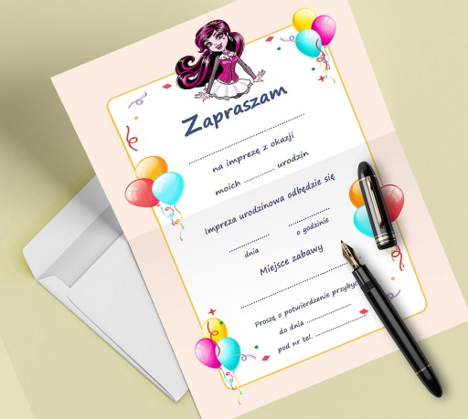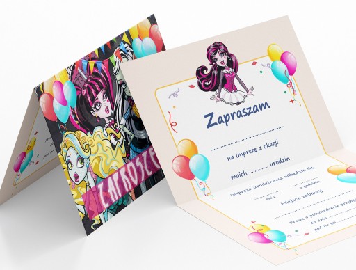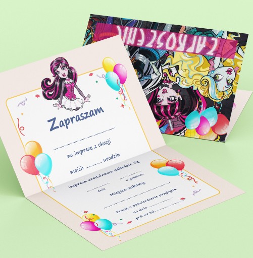 ZAPROSZENIE MONSTER HIGH NA URODZINY DZIECKA + KOPERTA GRATIS