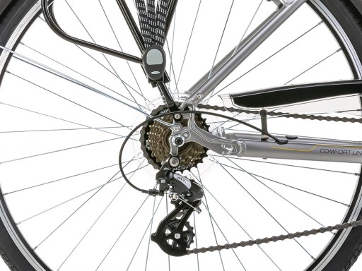 To solidny rower, w atrakcyjnej cenie, który odpowiednio eksploatowany będzie sprzętem na lata. Jest gwarancją dużego komfortu krótkich, a zarazem dłuższych jazd. Posiada regulowany mostek ułatwiający ustawienie wygodnej pozycji za kierownicą. Amortyzator przedni sprawdzi się zarówno w czasie jazdy w terenie jak i podczas kręcenia w mieście. Napęd Shimano Altus 3x7 jest gwarancją płynnej pracy oraz szerokiego zakresu przełożeń. Model w swojej specyfikacji posiada bogate wyposażenie takie jak bagażnik, będący niezbędnikiem w czasie dalszych jazd. Są błotniki wraz z osłoną napędu, które sprawiają, że nawet deszczowa jazda nie będzie czymś o czym jak najszybciej chcielibyśmy zapomnieć. Jazda po zmorku na Wagancie jest możliwa za sprawą standardowego oświetlenia przedniego i tylnego, które dodatkowo zapewni nam widoczność u innych użytkowników dróg i ścieżek. Stopka ułatwi parkowanie i postoje podczas podróży. Model występuje w dwóch wersjach kolorystycznych i 3 rozmiarach. HAMULEC PRZÓD: Aluminiowy HAMULEC TYŁ: Aluminiowy KASETA/WOLNOBIEG: Wolnobieg (14-28), 7s KIEROWNICA: stalowa 610 mm KOLOR: srebrny KOLOR SZCZEGÓŁOWY: srebrno-żółty KOŁA, RAMA: 28 / alu 6061 LAMPA PRZÓD: Buchel LAMPA TYŁ: Buchel MANETKI PRZÓD: Shimano ST-EF41, 3s MANETKI TYŁ: Shimano ST-EF500, 7s MECHANIZM KORBOWY: Shimano FC-TY301, 48/38/28T, 170 mm MOSTEK KIEROWNICY: Aluminiowy regulowany MTS-C297 90 mm NAPĘD: 21 biegów OBRĘCZE: Aluminiowe dwukomorowe OPONY: 700×35C PEDAŁY: FP-804 PIASTA PRZÓD: Stalowa PIASTA TYŁ: Stalowa PRZERZUTKA PRZÓD: Shimano Tourney FD-TY510 PRZERZUTKA TYŁ: Shimano Altus RD-M310 ROK PRODUKCJI: 2023 ROZMIAR: 21 ROZMIAR KOŁA: 28 SIODŁO: Selle Royal / Selle Bassano SZTYCA: Aluminiowa 27,2 mm 300 mm UŻYTKOWNIK: mężczyzna WAGA: 17,5 kg WARIANTY - ROZMIAR: 18; 19; 20; 21; 23 WERSJA: Podstawowa WIDELEC: Amortyzowany