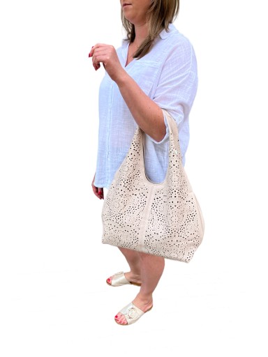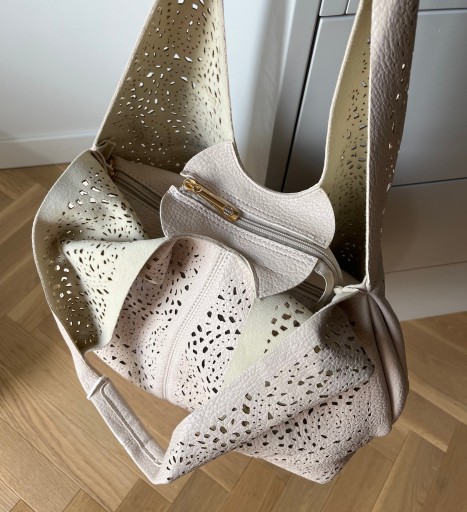 ANDREA MASSI - włoska modna BEŻOWA BEIGE ażurowa torebka torba worek shopper bag wzór