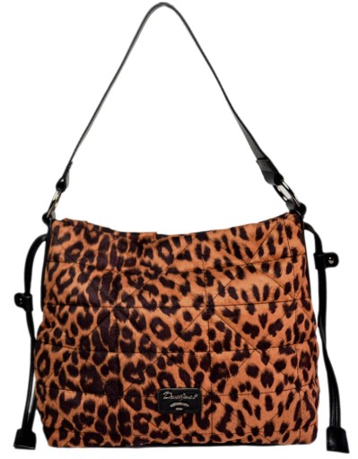 Torebka damska firmy David Jones wykonana z wysokiej jakości skóry ekologicznej i materiału z motywem zwierzęcym w kolorze brązowym. Zapinana na suwak. Posiada rączkę i dopinany długi regulowany pasek.