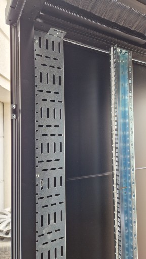 Szafa z tylnymi drzwiami ażurowymi, od frontu otwarta, w pełni sprawna, z dużymi możliwościami regulacyjnymi stelażu.