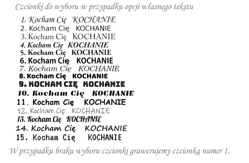 W wiadomości przy zakupie proszę podać numer graweru, kokardki oraz dodatkowe informacje. Przy wyborze graweru graficznego numer 8, należy przesłać grafikę w formacie jpg lub png. W przypadku braku takiej informacji wysłana zostaje wersja podstawowa bez graweru.