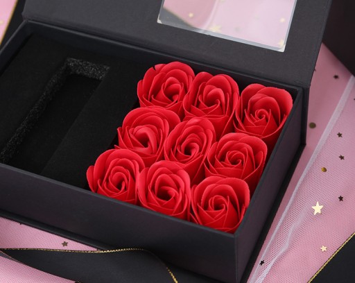 - 12 efektownych czerwonych róż (róże wykonane są z przyjemnego materiału hipoalergicznego)
