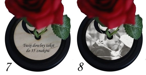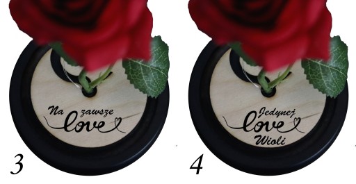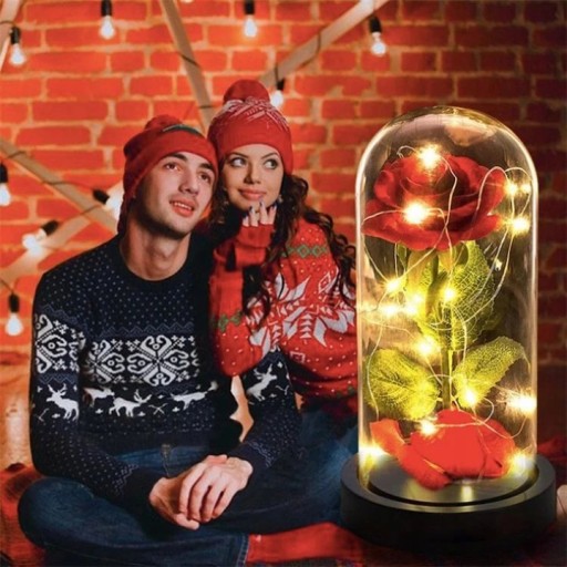 Piękna róża ze światłami LED zamknięta w kopule ze szkła i drewnianą podstawą. W zestawie pudełko prezentowe.