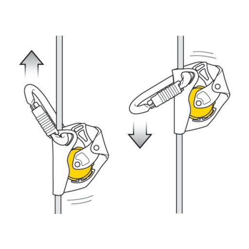 samoczynnie przesuwa się w górę i w dół liny asekuracyjnej,