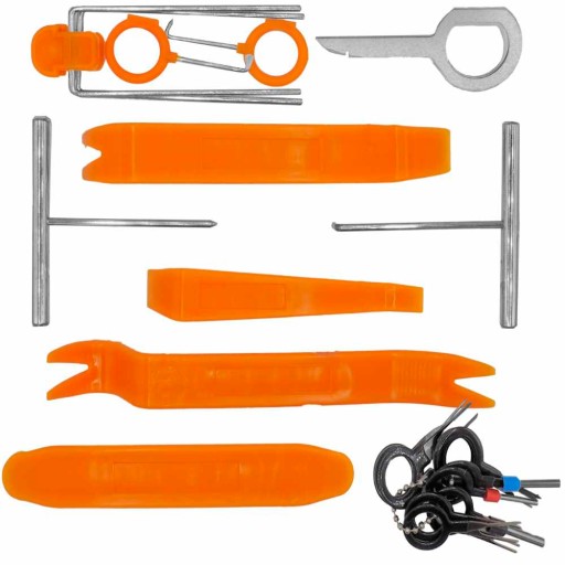 Zestaw do demontażu tapicerki jest prosty w obsłudze, umożliwiając precyzyjny demontaż tapicerki, ponadto odpowiednio użyty nie powoduje je zarysowań, co wpływa na estetykę wnętrza.