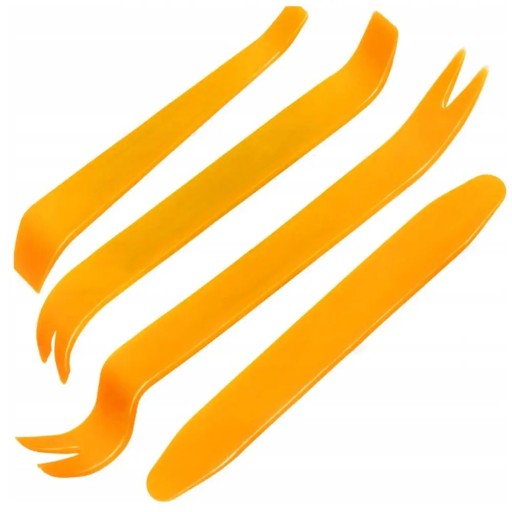 Składa się z 4 łyżek o różnej długości i twardości i idealnie nadaje się do demontażu różnego rodzaju plastikowych elementów zamocowanych na zatrzaski np. tapicerki w samochodzie, spinek w samochodzie, pilotów tv, sprzętu elektronicznego i nie tylko.