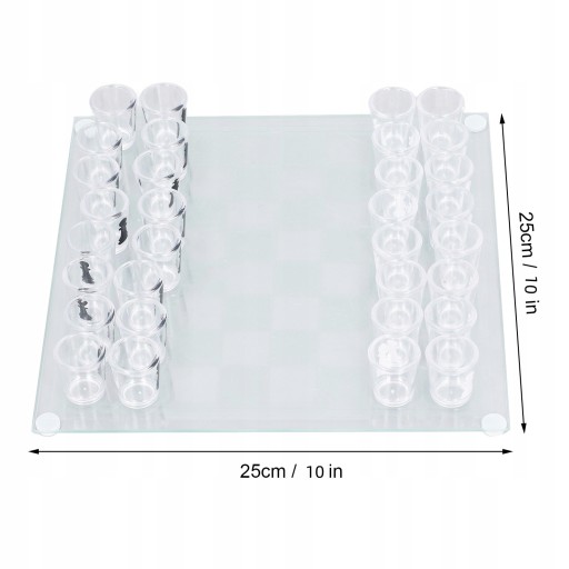 Cecha: 1. Spraw, aby szachy były zabawne: zestaw szachowy do picia zawiera 32 kieliszki. Dzięki tej szklanej szachownicy nie musisz się martwić o rozlanie! Świetny sposób na uczynienie szachów jeszcze lepszą zabawą!