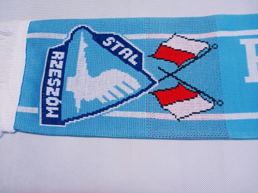STAL RZESZÓW- szal dziany,dwustronny, na końcach białe frędzle.Napis na szaliku z jednej i drugiej strony--FOREVER STAL RZESZOWIANIE.