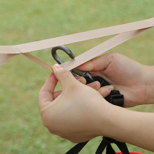 Linę można łatwo przywiązać do gałęzi w celu użycia lub przywiązać do masztu namiotowego za pomocą haczyków lub na patyku na poboczu drogi.