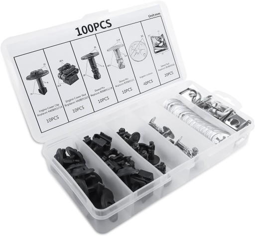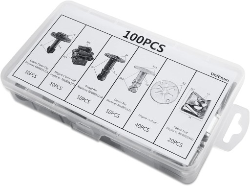 W zestawie znajdziesz 100 klipsów samochodowych w 6 różnych rozmiarach, co zapewnia możliwość dopasowania do większości popularnych samochodów i motocykli. Dzięki temu zestawowi masz pewność kompatybilności z różnymi modelami.