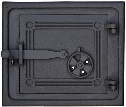 Drzwiczki paleniskowe, wykonane z żeliwa szarego.