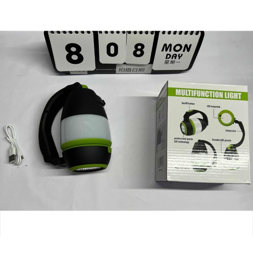 Moc: lampa kempingowa + lampka na biurko: 10W, latarka: 3W.