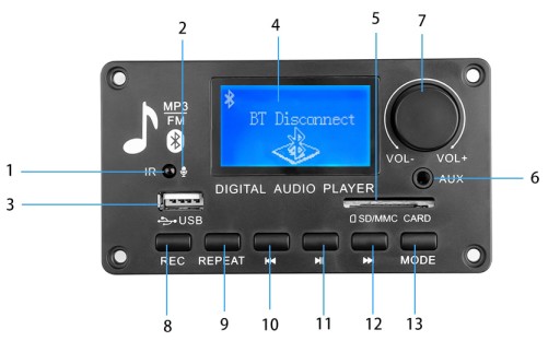 Płyta audio/głośnik bluetooth 42 dla wzmacniacza wykorzystuje wysokowydajny audio, który może wyprowadzać dźwięk wysokiej jakości HIFI