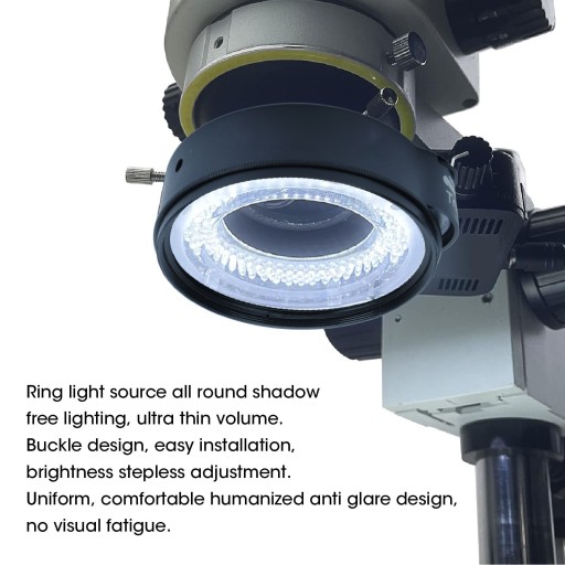 4. Humanizowana konstrukcja: Lampa pierścieniowa mikroskopu ma jednolitą i wygodną konstrukcję przeciwodblaskową, zmniejszającą zmęczenie wzroku, odpowiednią do dugotrwaego użytkowania bez dyskomfortu.