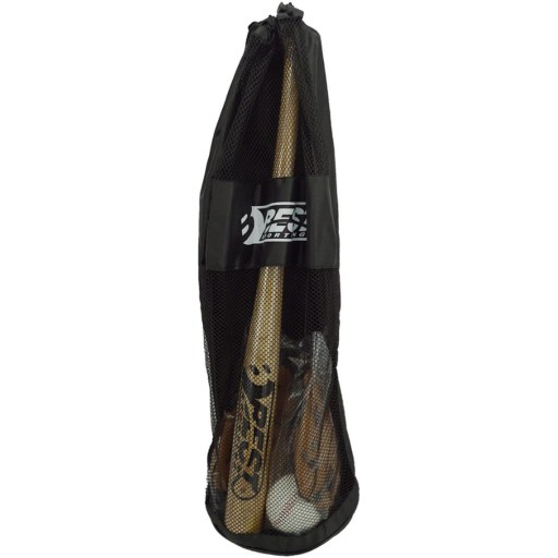 Wykonany z dużą dbałością o szczegóły z dobrej jakości materiałów dzięki temu przetrwa niejeden sezon. Rękawica łapacza na lewą dłoń, uszyta z materiałów syntetycznych o różnej funkcji, absorbuje siłę uderzenia i zabezpiecza nadgarstek gracza przed kontuzją. Drewniany dobrze wywarzony kij precyzyjnie odbjie każdą piłkę.