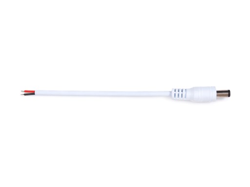 - Wtyk DC o średnicy 5,5 x 2,1 mm z zamontowanym przewodem zasilającym o długości 10 cm. Złącze znacznie ułatwia montaż z urządzeniami zakończonymi wtyczką DC