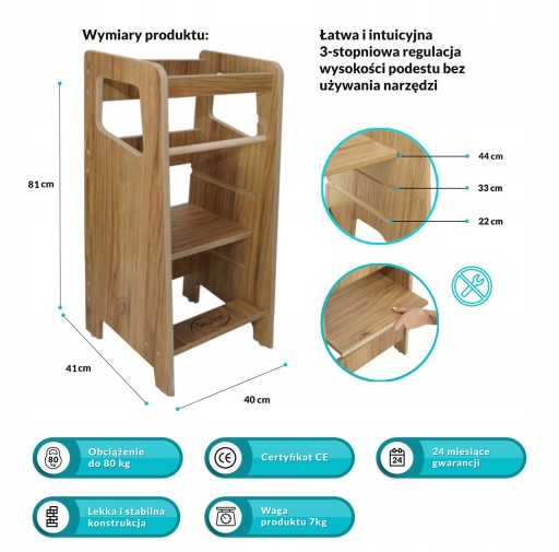 Кухонный помощник Деревянный детский кухонный помощник Solid Strong Polish