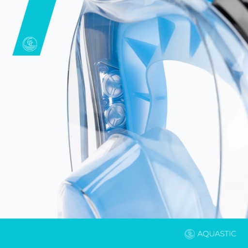 Dolny zawór maski AQUASTIC KAI umożliwia szybkie i efektywne wydmuchanie zgromadzonej wody z wnętrza maski. Nawet jeśli niewielka ilość wody dostanie się do środka, można ją łatwo usunąć bez zdejmowania maski. To zapewnia, że wnętrze maski pozostaje suche, co przekłada się na wyższy komfort i bezpieczeństwo użytkowania.