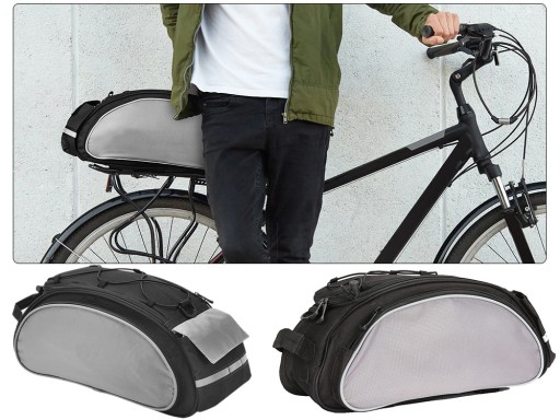 Torba została obszyta paskiem odblaskowym dla zwiększenia bezpieczeństwa podczas podróży. Uniwersalna torba pasuje do większości typów bagażników, zapinana na regulowane klamry.