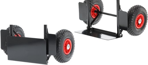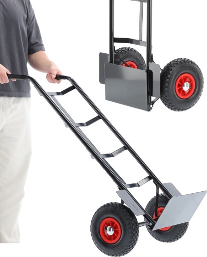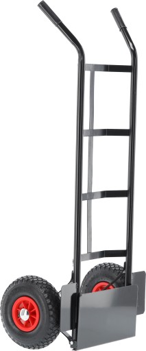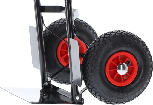 Dzięki pompowanym kołom z bieżnikiem, wózek zapewnia znakomitą przyczepność do każdego rodzaju podłoża, co ułatwia przemieszczanie nawet przy obciążeniu 200 kg.