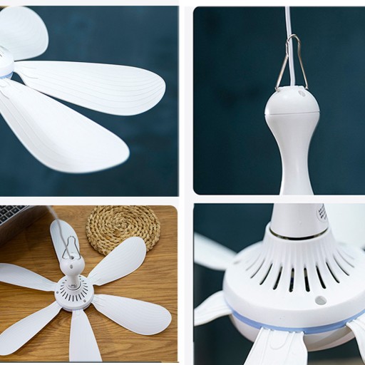 🪭Mini przenośny wiszący elektryczny wentylator sufitowy 110 V 400 mm Z 6 kawałkami miękkich ostrzy, które można bezpiecznie uruchomić nie raniąc ludzi, i są łatwe do czyszczenia.