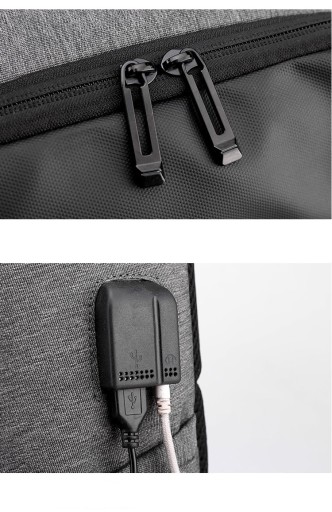 - Plecak posiada wbudowany, zewnętrzny port USB. Po podpięciu do niego power banka naładujesz swój telefon.
