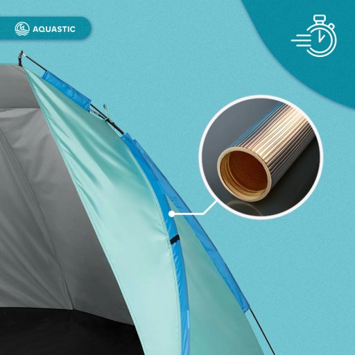 Namiot plażowy AQUASTIC Concielo to idealny towarzysz na wakacjach, który zachwyca pięknym kolorem i funkcjonalnością. Stworzony z myślą o komforcie całej rodziny, zapewnia doskonałe miejsce do zabawy dla dzieci oraz odpoczynku dla rodziców na plaży. Niezależnie od tego, czy planujesz krótki wypad nad morze, czy dłuższy pobyt nad jeziorem, namiot AQUASTIC Concielo sprawi, że każdy dzień spędzony na świeżym powietrzu będzie pełen radości i relaksu. Nie tylko oferuje funkcjonalność i komfort, ale również wyróżnia się atrakcyjnym wyglądem.