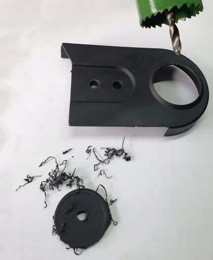 NIEKTÓRE TYPY SZLIFIEREK MAJĄCE NA WYPOSAŻENIU DŁUŻSZY WAŁEK MOCOWANIA TARCZY WYMAGAJĄ WYCIĘCIA OTWORU W DOŁĄCZONEJ OSŁONIE