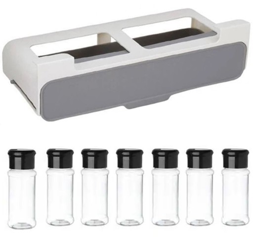 Zestaw 6 przezroczystych pojemników na przyprawy wraz z dedykowaną podstawą przeznaczoną do montażu podszafkowego. To niezbędny element wyposażenia Twojej kuchni. Bezbarwny plastik sprawi, że nie będziesz miał problemu z rozpoznaniem właściwej przyprawy. Wszystkie pojemniki posiadają dwa rodzaje otworków dla większej precyzji dozowania. Zestaw został wykonany z solidnego tworzywa co zapewnia długie i bezproblemowe użytkowanie i doskonale dopasuje się do wystroju każdej kuchni.