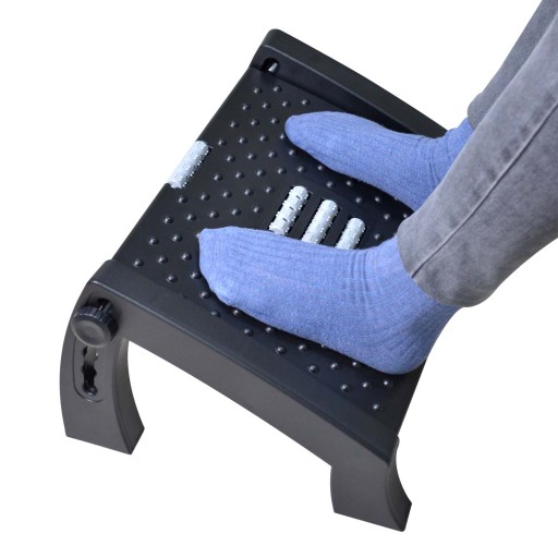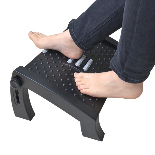 Ergonomiczny design: duża powierzchnia stopy pomiarowa 16.5" przez 12.2"; Teksturowane powierzchnie z masażem i wałkiem, które masują stopy mogą zapewnić Ci wygodę i wywołać krążenie krwi w kończynach dolnych. Ten podnóżek biurowy jest zaprojektowany z czterema solidnymi antypoślizgowymi nogami, dzięki czemu nie będzie ślizgał się po drewnianych podłogach.