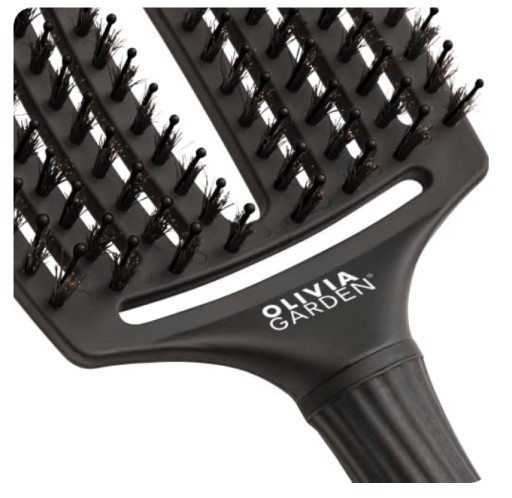 Lekka szczotka Olivia Garden Fingerbrush Combo pozwala na bardzo delikatne i skuteczne rozczesywanie nawet najbardziej opornych i grubych włosów. Specjalnie wyprofilowany kształt szczotki sprawia, że rozczesywanie włosów jest prawdziwą przyjemnością. W 100% włosie z dzika wygładza włosy podczas stylizacji oraz nadaje im połysk i objętość. W połączeniu z nylonowym włosiem skóra głowy jest delikatnie masowana. Unikalna antystatyczna technologia sprawia, że włosy nie elektryzują się podczas czesania i jednocześnie są chronione przed szarpaniem i ciągnięciem. Dzięki temu łuski włosa zostają domknięte pozwalając zachować właściwy poziom nawilżenia włosów oraz dodając im objętości i blasku.