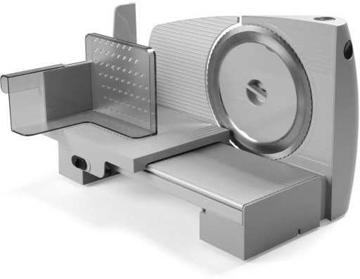 - Konstrukcja: Nóżki antypoślizgowe, Ząbkowana tarcza ze stali nierdzewnej, Wózek ze stali szlachetnej, Wyjmowana tarcza tnąca