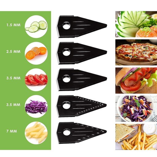 - Ten zestaw do siekania wyposażony jest w 5 wymiennych ostrzy w kształcie litery V, które umożliwiają szybkie i łatwe krojenie lub siekanie owoców i warzyw.