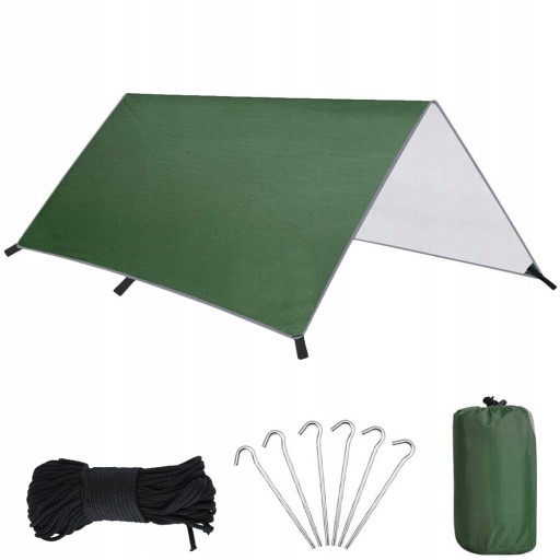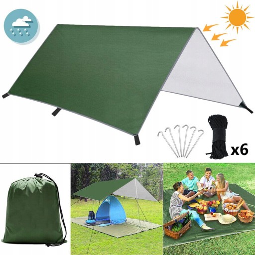 Tarp płachta biwakowa wodoodporna markiza hamak odkryty namiot kempingowy słupy 3x3m