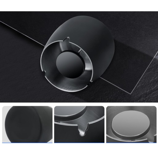 ta popielniczka jest wykonana z litej stali nierdzewnej (czarnej) i posiada antypoślizgowe i zapobiegające zarysowaniom podkładki, które utrzymują popielniczkę na miejscu i zarysowują blat.