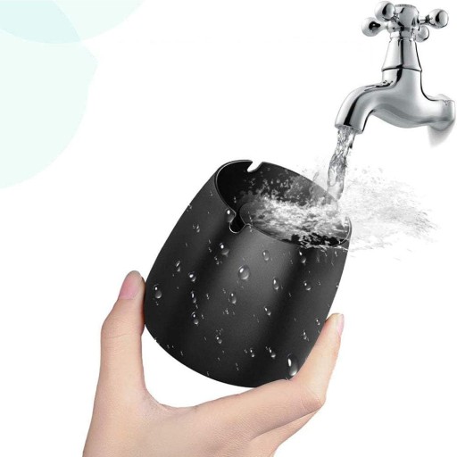 Czarna popielniczka wykonana jest z wysokiej jakości pogrubionej stali nierdzewnej, która jest solidna i trwała oraz niełatwa do uszkodzenia. Popielniczka jest wodoodporna, odporna na rdzę i zapach.
