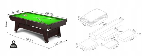Stół bilardowy Vintage 9ft - wymiary