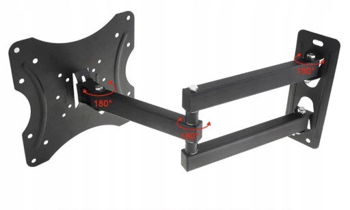 Regulowany wieszak LCD można nie tylko przysuwać i odsuwać od ściany. Możliwa jest tu również regulacja kąta nachylenia ekranu odbiornika i to w zakresie aż +15° do -15°. Dzięki tak szerokiemu zakresowi regulacji w pionie (góra/dół) ekran będzie bez problemu widoczny bez względu na to, na jakiej wysokości powiesimy odbiornik. Uchylny uchwyt TV może być również regulowany w poziomie. Obrotowy wieszak TV można obracać w prawo/lewo aż o 180°.