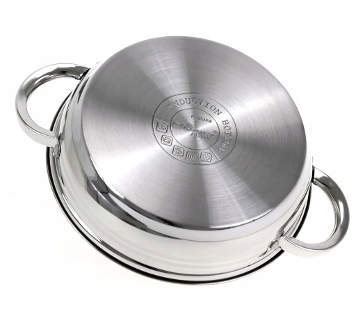 Zewnętrzna część garnka w 90% polerowana na wysoki połysk, w 10% MATOWA INOX.