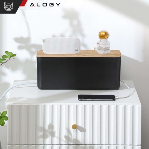 Alogy Box M to nie tylko elegancki organizer na kable z imitacją drewna, ale także praktyczne rozwiązanie do schowania listwy zasilającej oraz innych przewodów, co pozwala utrzymać porządek i zminimalizować nieład w przestrzeni biurowej lub domowej.