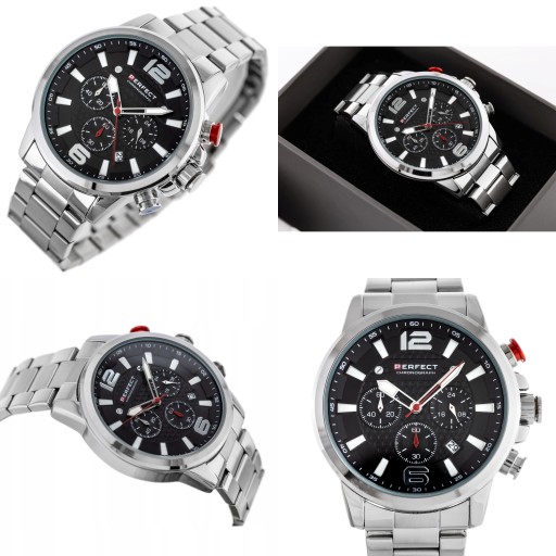 ZEGAREK MĘSKI PERFECT BOLTON +BOX +GRAWER CHRONOGRAF DATOWNIK STALOWY